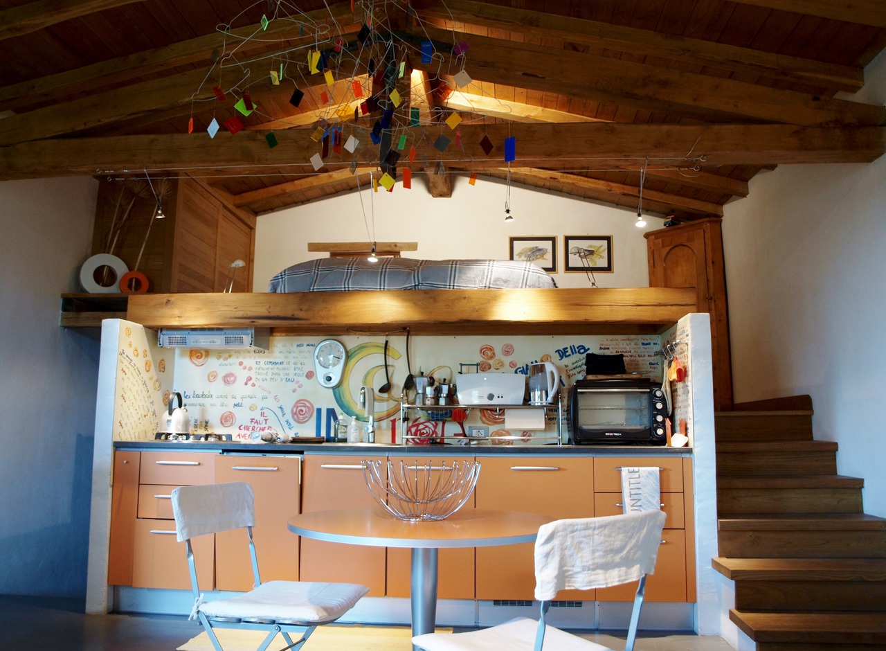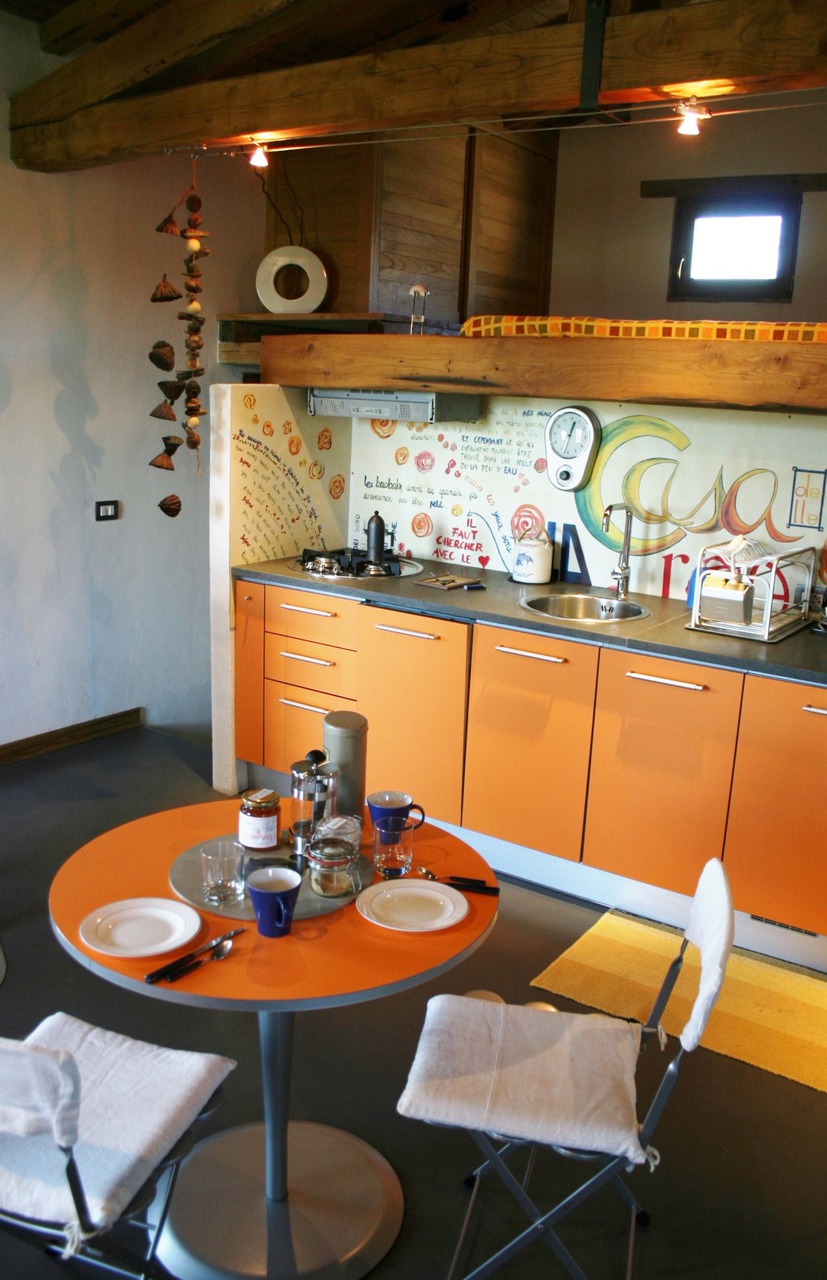 Una costruzione in pietra di 35 metri quadri è stata recuperata ad abitazione. Ricalibrando le altezze e ricostruendo le solette all’interno, è stato possibile ricavare una zona living, una zona di servizio parzialmente interrata e una zona notte rialzata. L’abilità nello sfruttare l’altezza del fabbricato, enfatizzando la struttura in legno a capriata della copertura, ha permesso la costruzione di una zona notte a soppalco, separata dal resto dell’abitazione nonostante affacci sulla zona giorno. il soggiorno si apre senza mediazioni appena si varca l’ingresso; sul fronte opposto una piccola ed essenziale cucina in linea è riquadrata da due scale, una a scendere, l’altra a salire.
