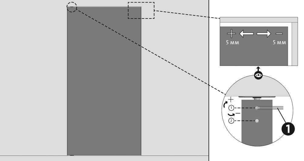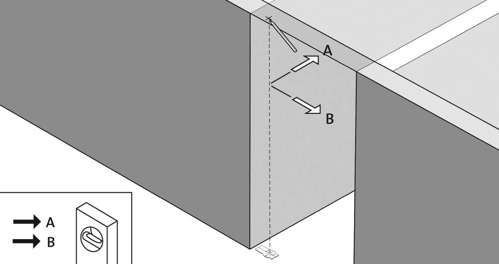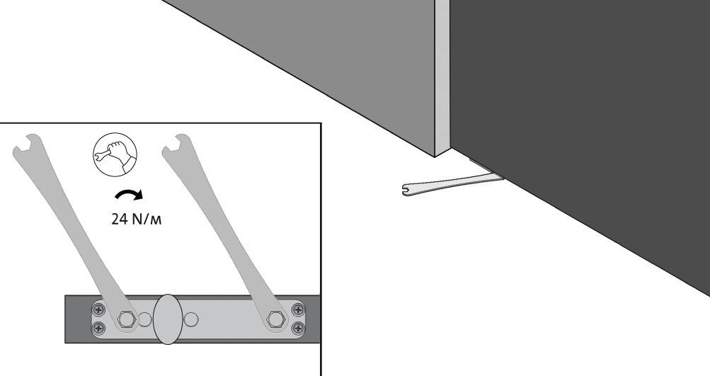 - MESSA IN SQUADRA Con una chiave inglese, regolare la messa in squadra della porta in basso.