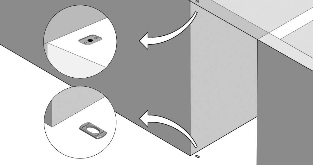 - FISSAGGIO PIASTRA A SOFFITTO Iniziare fissando la piastra in acciaio sul soffitto; sono necessari due normali tasselli a espansione.
