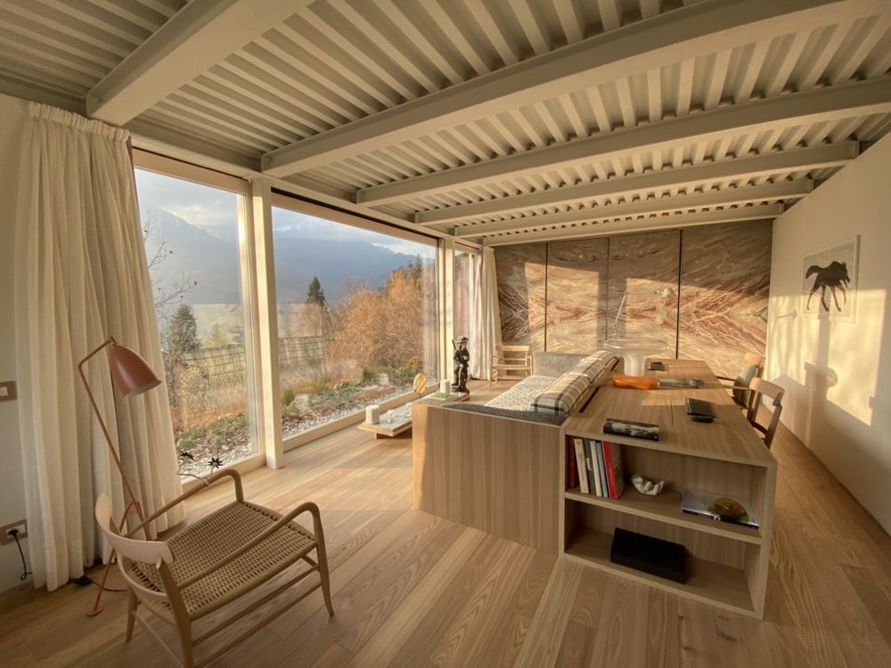 Affinché l’intervento rispettasse i caratteri costruttivi del luogo, i progettisti hanno studiato i dettagli tipici del collegamento tetto-pareti e delle bucature dei rustici del territorio e hanno recuperato gli architravi lignei, integrandoli con nuove travi “fiammate” per ottenere un effetto anticato, e gli imbotti in legno delle finestre.
