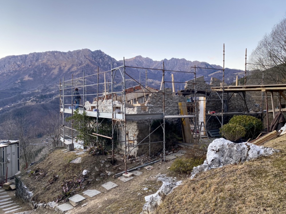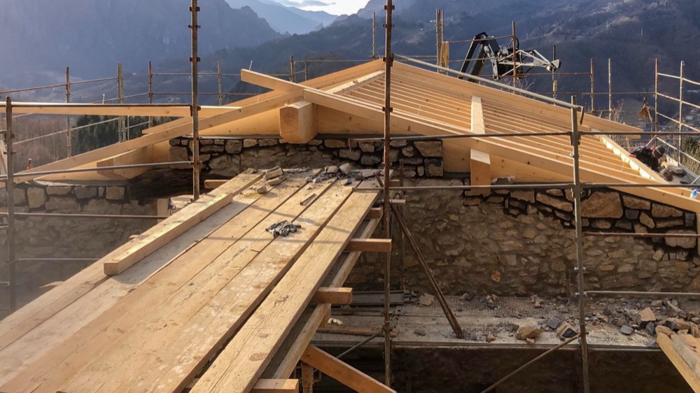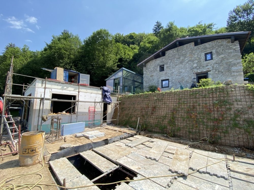 Conservazione delle murature in pietra e ampliamento con tetto verde, copertura ventilata con fotovoltaico, isolamento interno delle pareti, rifacimento del solaio: l’importante recupero in classe energetica A4