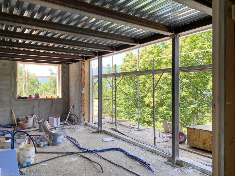 L’ampliamento conta di due piani, di cui il primo interrato. La costruzione è stata eseguita in cemento armato, protetto con membrane bugnate e guaine impermeabilizzanti per il livello interrato, e in carpenteria metallica per il primo livello. L’isolamento è stato eseguito con pannelli in XPS. La carpenteria metallica del solaio interpiano e della copertura è stata lasciata a vista. La copertura è costituita da un tetto giardino a verde intensivo seminato a prato.