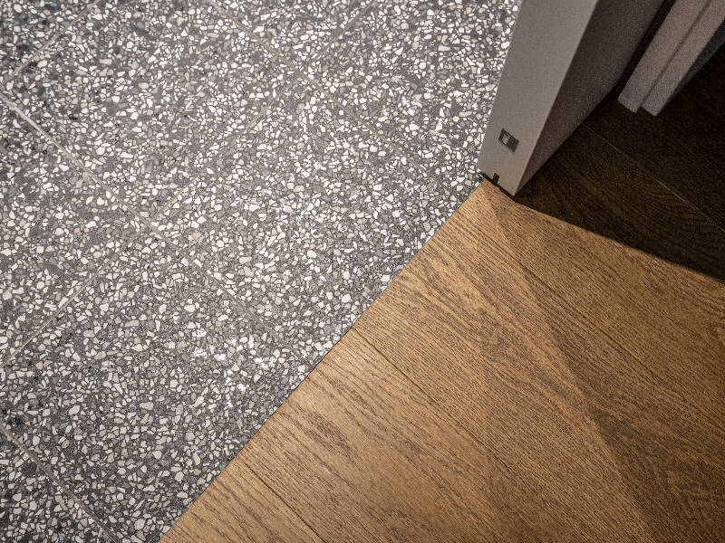 All’interno dell’abitazione, avendo cambiato tutte le porte e i serramenti verso l’esterno, l’innalzamento della quota di pavimento non ha comportato disagi, anzi. Avere la soletta leggermente sopraelevata rispetto alla quota dei balconi amplifica la sicurezza dalle infiltrazioni d’acqua dall’esterno.