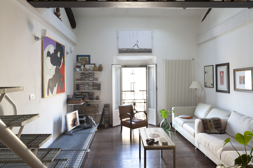 Un progetto nato dalla collaborazione di diverse donne che hanno saputo unire la tradizione con il moderno, l’oggetto più economico con la finitura più costosa, la fluidità dello spazio dell’intero appartamento con lo studio attento di ogni particolare, in una dialettica interamente declinata al femminile. Così il bianco delle pareti, delle strutture metalliche e dei divani dialoga con il quadro dell’artista milanese Anna Montecroci e l’immagine eterea della fotografia della tedesca Regina.