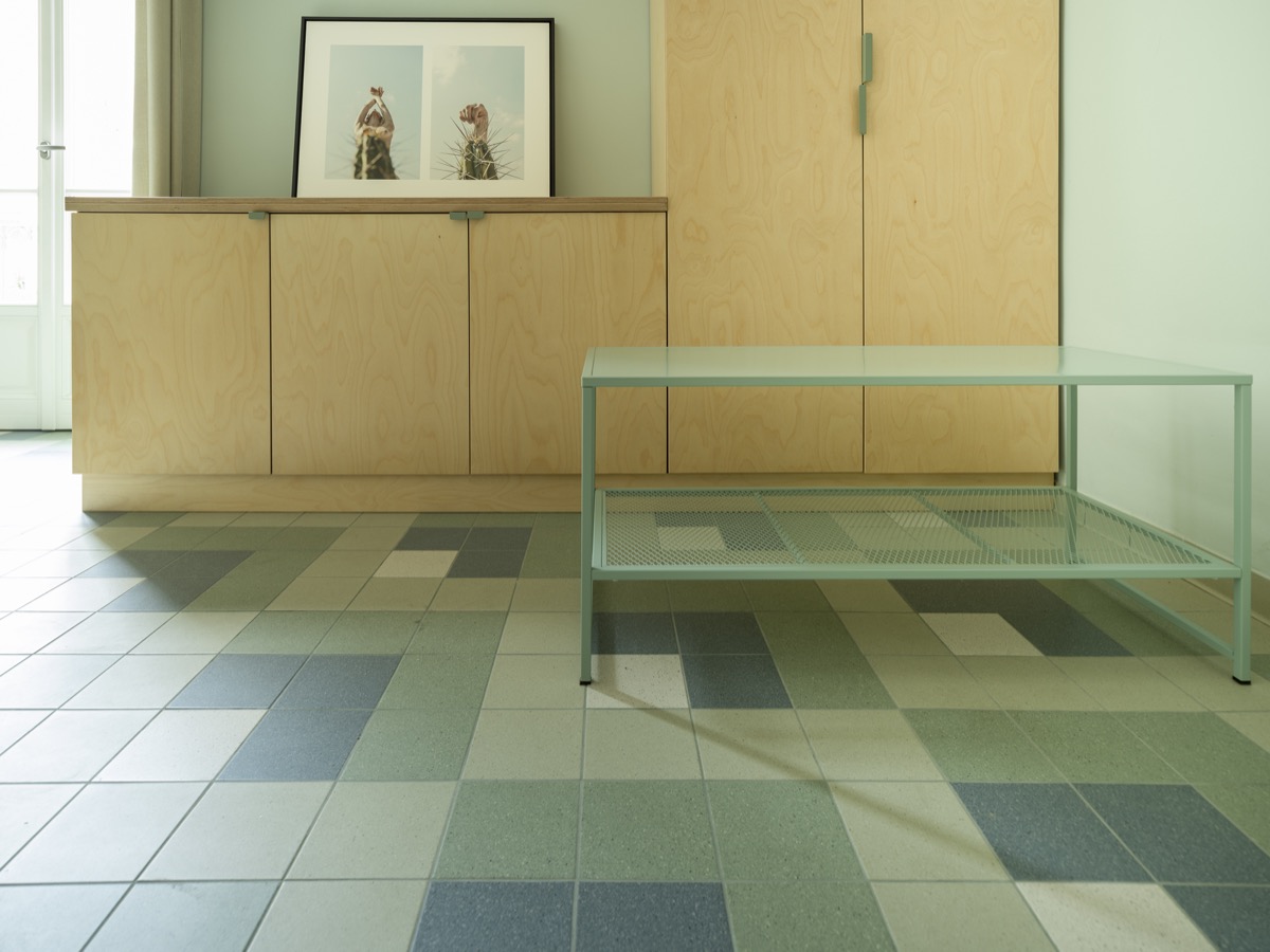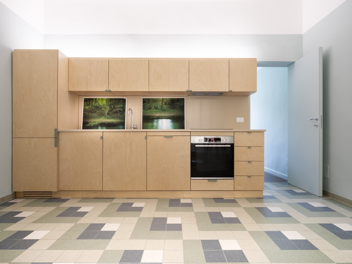 Anche la scelta del multistrato fenolico di betulla per tutti gli arredi non è casuale: il legno chiaro con venature a vista, oltre ad essere resistente all’umidità , contribuisce a mantenere quella sensazione di freschezza e naturalezza che attraversa tutto il progetto.