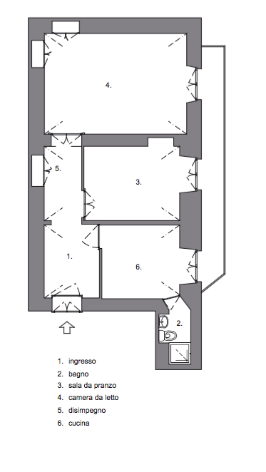 L’abitazione presentava una struttura molto rigida con un buio corridoio d’entrata che distribuiva i tre spazi principali isolandoli in se stessi senza soluzione di continuità.