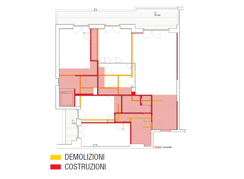 Visto lo stato di fatto, per dar corso a un progetto che soddisfacesse le aspettative la soluzione migliore (ma anche la più rapida) era demolire tutto e ridisegnare gli ambienti da zero.