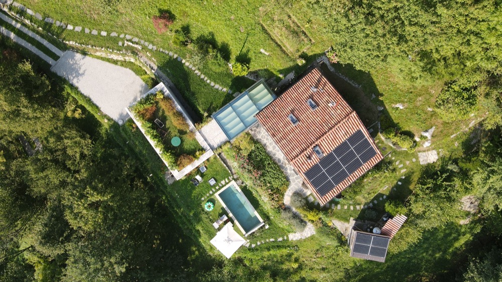 Conservazione delle murature in pietra e ampliamento con tetto verde, copertura ventilata con fotovoltaico, isolamento interno delle pareti, rifacimento del solaio: l’importante recupero in classe energetica A4