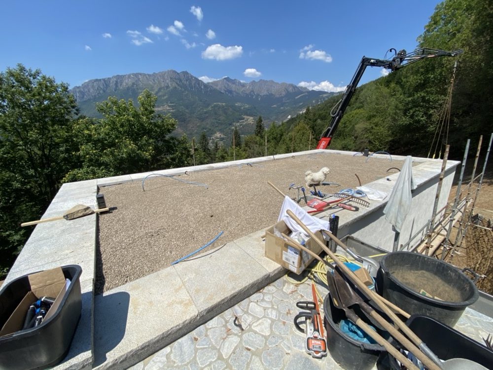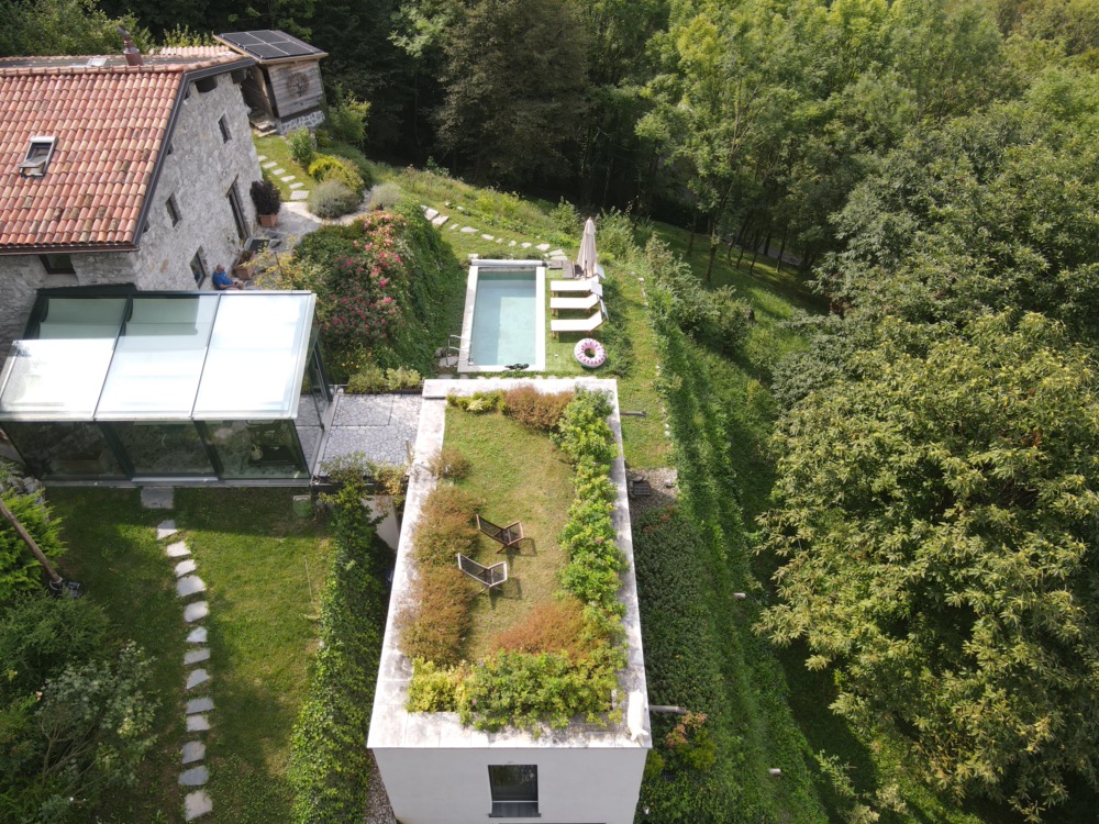 Conservazione delle murature in pietra e ampliamento con tetto verde, copertura ventilata con fotovoltaico, isolamento interno delle pareti, rifacimento del solaio: l’importante recupero in classe energetica A4
