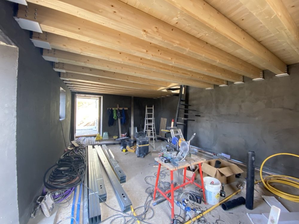Le murature in pietra sono state isolate dall’interno: dopo la rasatura è stato posizionato uno strato impermeabile e pannelli in cartongesso (13 mm) accoppiati a lastre di poliuretano espanso rigido (dello spessore di 100 mm).